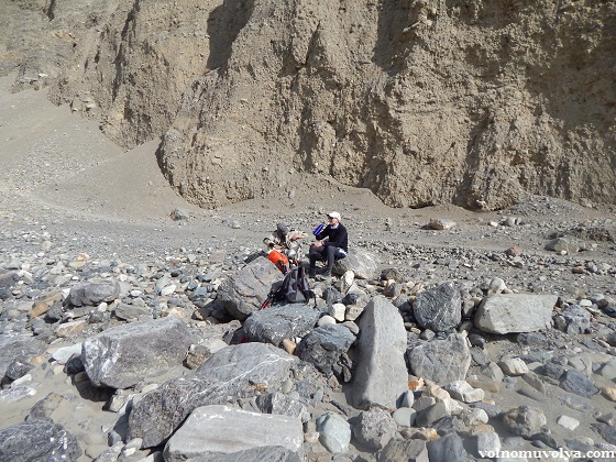 Вторая версия происхождения гладкости на камнях - ветер. Камни лежат на земле, и ветер постепенно обтёсывает их с помощью песчинок. Ветер там действительно очень сильный, прямо сносит с ног. Но и эта версия не верна, так как этой гальки полно в срезах грунта с левой стороны дороги (если смотреть на юг). Т.е. этих камней полно в земле, в грунте, и если выкопать яму у нас под ногами, глубиной в пару метров, то по всей высоте ямы мы будем наблюдать эти галечники. Я мог бы плюнуть на это дело, если бы до Гималаев никогда не посещал бы Уральские горы в моём родном краю. На Урале в горной местности ничего подобного нет. Все камни острые, никакого намёка на галечник, хотя Уральские горы являются самыми старыми на планете. В итоге тогда мы так и не решили вопрос, наверное, просто отвлеклись на что-то другое. Но сейчас я расскажу вам версию возникновения этих гладких обтёсанных природой камней на высоте свыше 2500 метров вдали от русла реки. Откуда они могли взяться, когда рядом нет моря? Ведь ладно, если бы эти камни лежали где-нибудь на низменности, которая вполне могла раньше быть затопленной. Но это Гималаи, никакой мировой океан никогда не мог подниматься до таких высот!