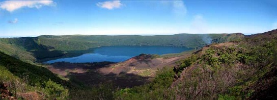 Весь остров - это большой вулкан высотой 1046 метров над уровнем моря. Т.е. от кромки воды до вершины острова такое расстояние. Так что он довольно большой, и его верхушка задерживает облака, которые в свою очередь производят постоянный источник пресной воды. Имеет плодородную вулканическую почву.