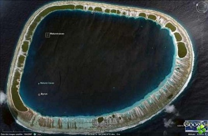 Площадь - 2.5 кв. км. Коралловый атолл.