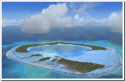 Коралловый атолл. Площадь - 1.3 км2. Вполне подойдёт для оседлой жизни романтика.