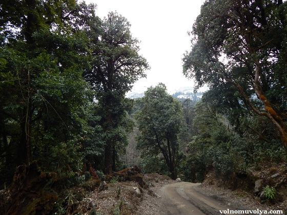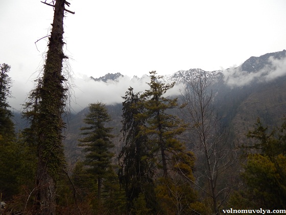 Ясной погоды уже и след простыл, небо затянуло облаками. Мы уже прошли Дарапани, Данакью, Танчок и вышли напрямую до Чаме. Кстати, местные жители говорят "Цаме" - это произношение гурунгов. Но, например, непальцы (горкха) Западной Бенгалии сказали бы "Чаме". Так или иначе, до города оставались уже считанные километры, но мы уже были довольно уставшие и мечтали быстрее дойти до какого-нибудь гестхауза с вай-фаем и остановиться там. Время подходило к 6 вечера, и мы уже прекратили устраивать превалы - надо идти побыстрее, ведь кто его знает, сколько ещё идти. Хотя по карте было немного, но Чаме всё нет и нет. Недавно здесь прошли дожди, и дороги размыты. Идти по грязи не очень то-приятно, а главное, гораздо сложнее. В Танчоке мы делали остановку и перекурили минут 15, заказав себе традиционный тибетский чай. Рецепт его прост: заварка, молоко, масло, соль. Напиток похож на бульон и сильно ощутим вкус соли. Но пить можно, вовсе не противно. К тому же ещё очень бодрит и придаёт сил. А соль в напитке находится для того, чтобы тибетцу не бегать в туалет часто на морозе, так как соль удерживает влагу в организме и не так часто хочется в туалет. В условиях морозных и ветренных Гималаев это проблематично и крайне некомфортно.