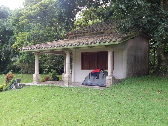 Я подумал, что скоро уже будет темнеть и надобно искать место под ночлег. Повсюду были ранчо и вся земля огорожена заборами. Спросил одного сторожа о возможности переночевать, он ответил мне, что он не может меня пустить, однако перейди через дорогу на ранчо соседа - и там тебя охотно примут. Я так и поступил, и да, меня охотно приняли, угостили мандаринами и бананами, я разместился, поставил палатку под крышу и отлично переночевал. Ночью шёл большой дождь и очень хорошо, что я не ночевал просто под открытым небом, а поставил палатку под навесом.