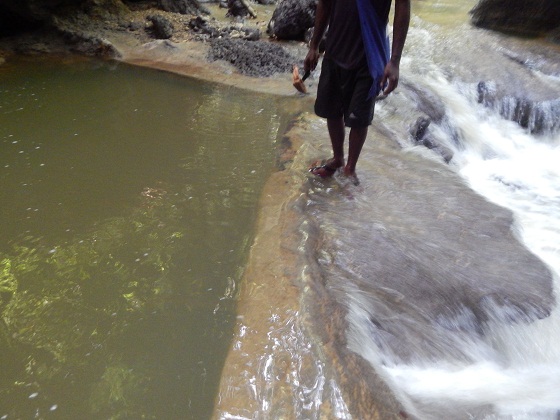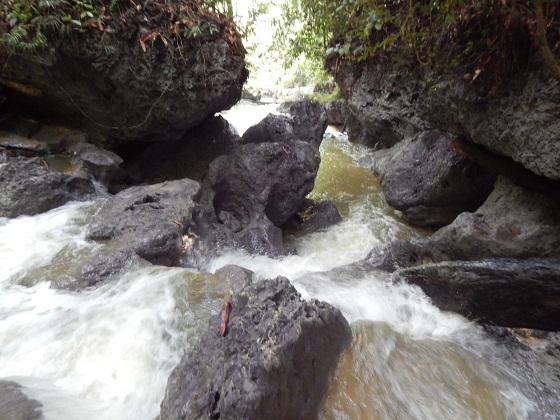 А потом как то раз мы с Салимом пошли в джунгли, вдоль реки Дади, к водопаду. Салим сам-то не особо лесной парень, поэтому он позвал Рубена, который в джунглях чувствует себя вольготно и ходит босиком. Я даже не ожидал, что Рубен попрёт нас в такую глушь. Когда тропинка кончилась, мы пошли прямо по воде, перепрыгивая и перелезая с одного камня на другой. Я с трудом защитил свою камеру от влаги, хотя внутрь неё попало немало. Скалы скользкие, одно неверное движение - и ты можешь оступиться. Один раз я оступился и упал в воду, но камеру держал на вверх поднятой руке, поэтому не намочил её, но очень испугался, ведь если я утоплю её в самом начале своего пребывания в ПНГ, то на что я буду снимать остальные моменты?